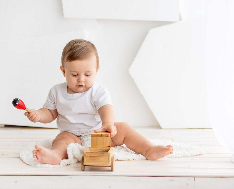 К 12 месяцам ребёнок может сидеть с игрушкой до 15 минут, но в основном всё же находится в движении. Малыш будет без устали ронять, катать, бросать, погружать в воду и трясти предметы, чтобы понять, как они себя ведут. На основе своих наблюдений дети формируют представления о формах (одни предметы катятся, другие — нет), текстуре (предметы могут быть шершавыми, мягкими или гладкими) и размерах (некоторые предметы помещаются внутрь других). Они даже начинают понимать, что одни предметы съедобны, а другие — нет, хотя всё равно пробуют всё на вкус, чтобы убедиться наверняка.